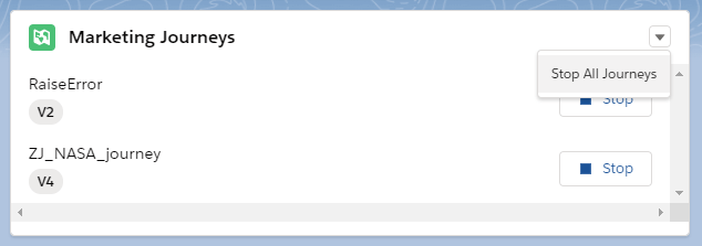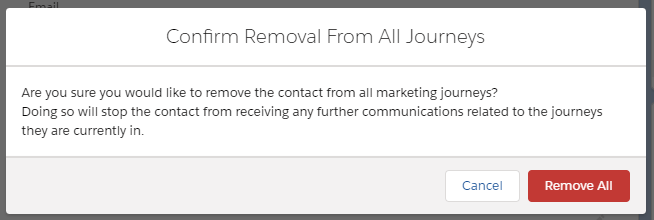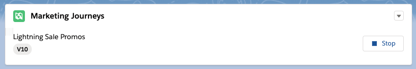 Marketing Cloud Journeys for Salesforce is a Lightning Component which can be added to the Contact, Lead, Case or Account page and it will display the list of Salesforce Marketing Cloud Journeys that the subscriber is currently in, along with a stop button to allow instant removal of said subscriber from the Journey.