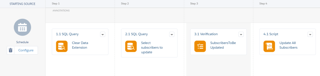 So far we have created an Automation that will query and update data and it can be run on a weekly, daily, or even an hourly basis, as long as there are records in there that require being updated. So let’s add a couple of additional steps in the Automation flow to make sure that we only run the script in case there are records that need updating.